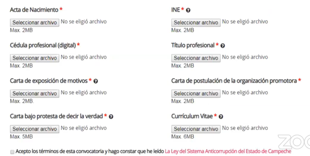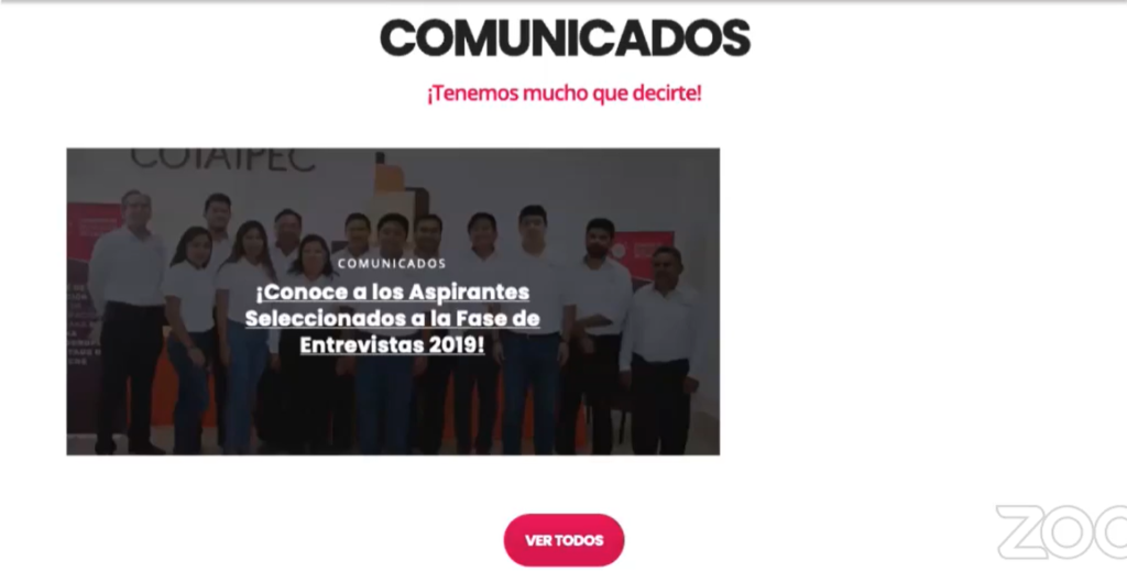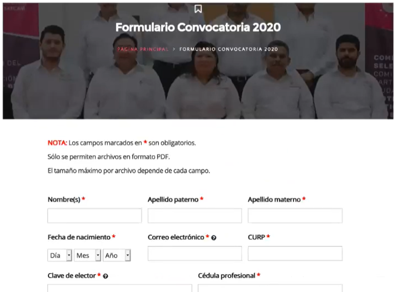 Plataforma web para la difusión de convocatoria y registro de los aspirantes.